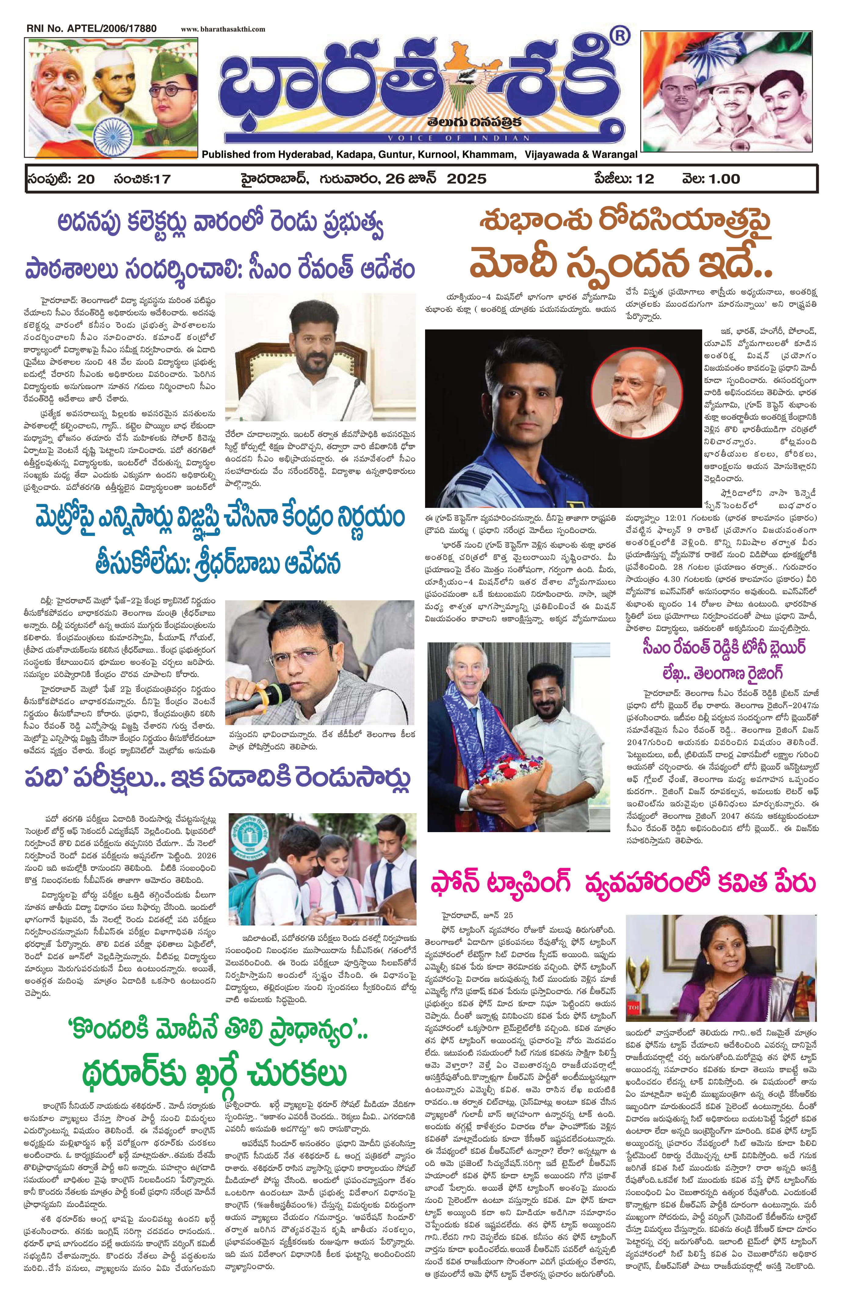 HYDERABAD (MAIN EDITION) - 26 Jun 2025 - - Page 1