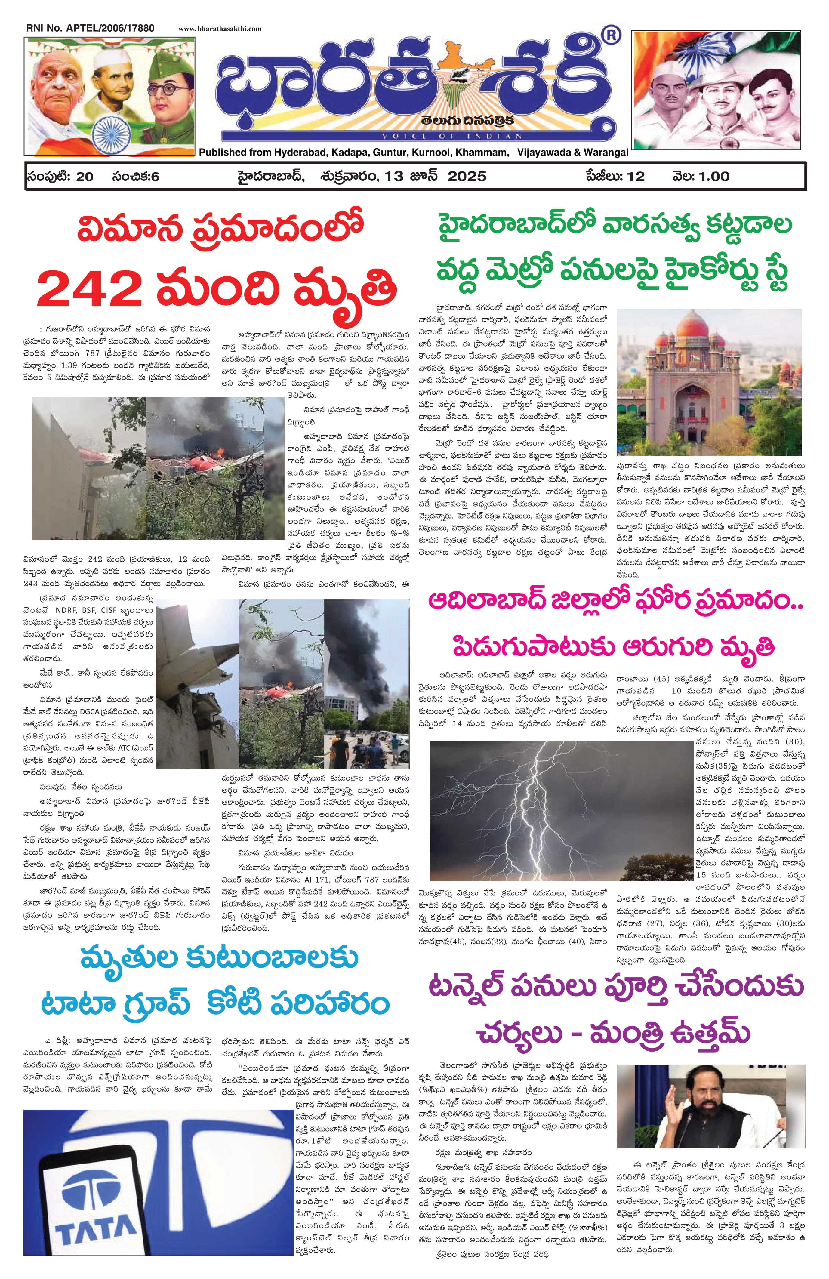 HYDERABAD (MAIN EDITION) - 13 Jun 2025 - - Page 1